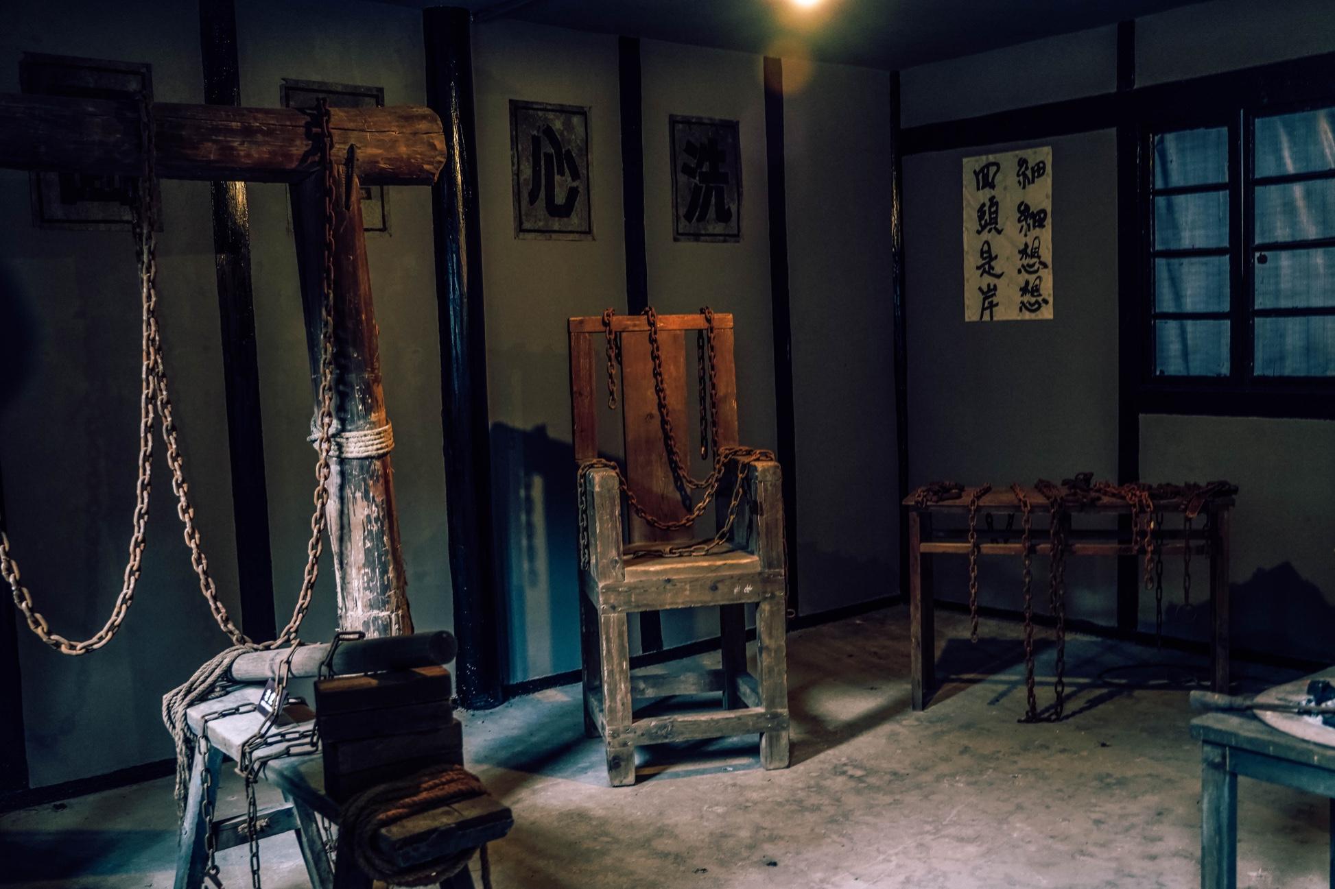 5.然后走到了一个大型停车场,那里有很多卖纪念品的,那公路再朝里走100米,就开始参观渣滓洞监狱了。在门口可能有人拿票给你,你拿到就是。反正记住,参观这些所有景点,都是免费的。