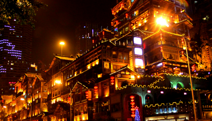 洪崖洞,原名洪崖门,是古重庆城门之一,国家4A级旅游景区,位于重庆市解放碑沧白路,地处长江、嘉陵江两江交汇的滨江地带。