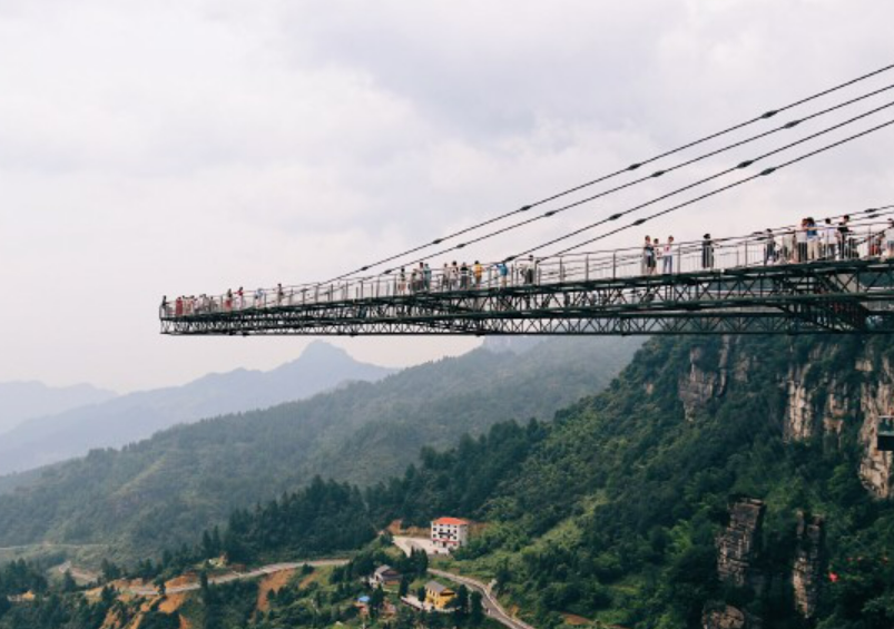 这里有“林中有石,石上有树,树石共生”的天下奇观,被誉为“绿色石林”。公园特色是“天空悬廊”,它成“A”字形,桥面铺设全透明玻璃,位于近300米高的悬崖峭壁之上。