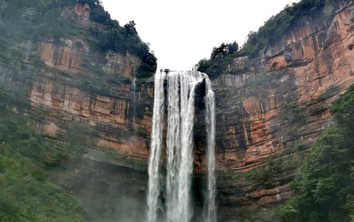望乡台瀑布,望乡台瀑布位于重庆江津区南部,距重庆市区137公里。 望乡台瀑布是四面山的标志性景点,瀑布高158米,宽48米,是四面山最为壮观的瀑布,比著名的黄果树瀑布高出一倍以上,堪称华夏第一高瀑。
