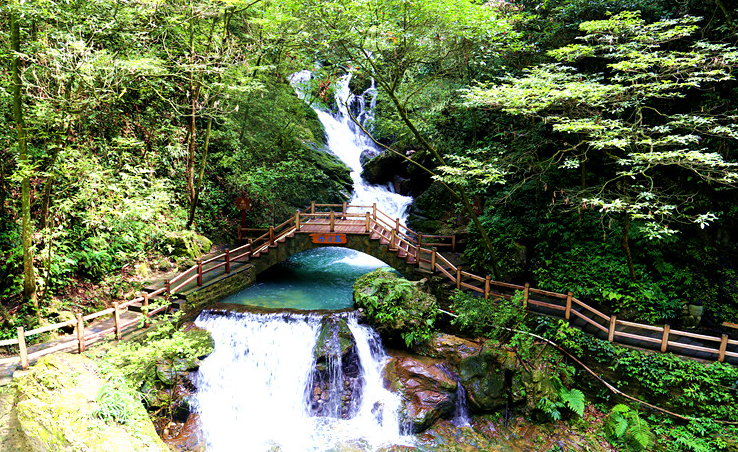 神龙潭潭深6米,水面宽约1000平方米。沿着蜿蜒曲折,有自上而下的游览便道通向潭边,那里是能让人神清气爽的"负氧离子"含量较多的地方。这里奔泻而下的瀑布、森林和深潭,实现了近乎完美的组合。