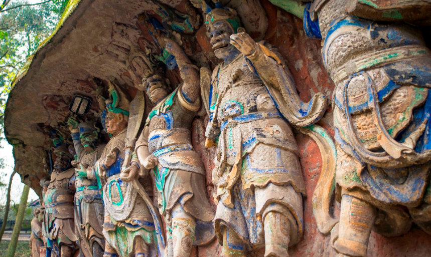 五、重庆大足石刻景区重庆大足石刻景区与敦煌莫高窟、云冈石窟、龙门石窟齐名,是大足县境内主要表现为摩崖造像的石窟艺术的总称。景区有74处5万余尊宗教石刻造像,是唐末、宋初时期的宗教摩崖石刻,以佛教题材为主,儒、道教造像并陈,尤以北山摩崖造像和宝顶山摩崖造像为著。