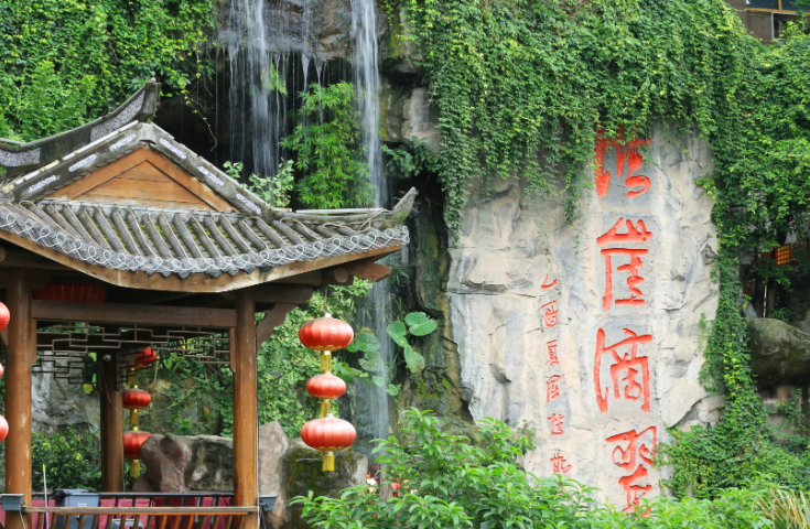 五、洪崖滴翠洪崖滴翠,洪崖洞一带曾是林木苍翠,树多则蓄水;于是一条小溪从山林间渗出,沿大阳沟、会仙桥一直流到洪崖洞附近;形成一道瀑布悬空而下,落至崖间再顺着岩石自上而下地汇作涓涓细流。