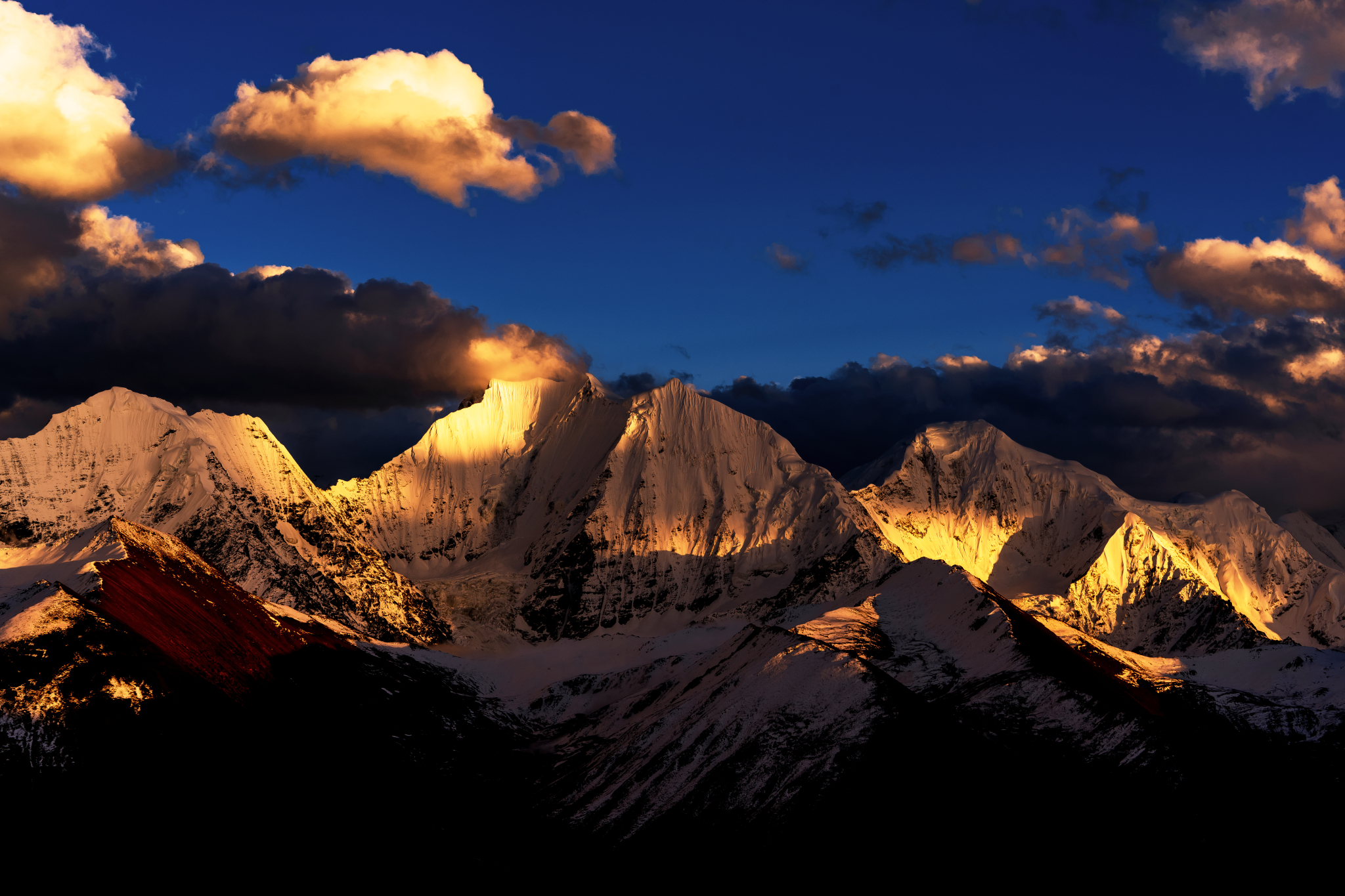 5、贡嘎山贡嘎山,又叫岷雅贡嘎,是大雪山的主峰。周围有海拔6 000米以上的山峰45座,主峰更耸立于群峰之巅,海拔7556米,是四川省最高的山峰,被称为“蜀山之王”。