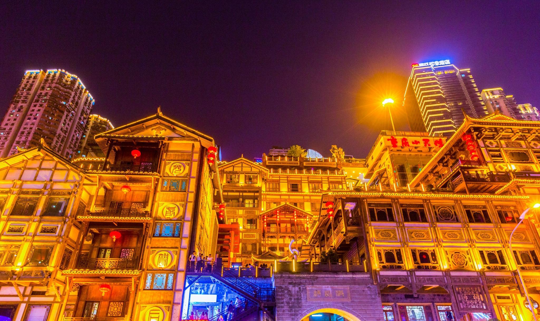 2、洪崖洞是重庆市重点景观工程,建筑面积4.6万平方米,主要景点由吊脚楼、仿古商业街等景观组成。洪崖洞一共有11层,夜晚灯光从晚上6点开灯,10点熄灯。可望吊脚群楼观洪崖滴翠,逛山城老街赏巴渝文化,烫山城火锅看两江汇流,品天下美食。形成了“一态、三绝、四街、八景”的经营形态,体现了巴渝文化休闲业态。