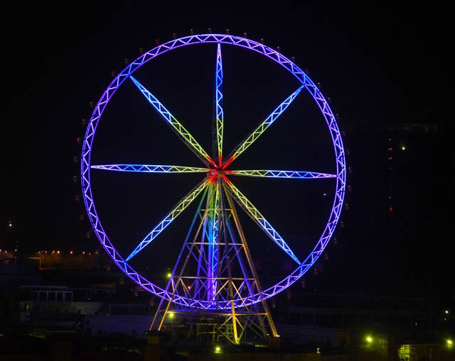 乘坐120米的摩天轮,上升到位于40层楼的高度,在绚丽多姿、变化无穷的灯光下,摩天轮将成为最耀眼的明珠。在这里,欣赏山城的夜景,将都市的万般风景尽收眼底。