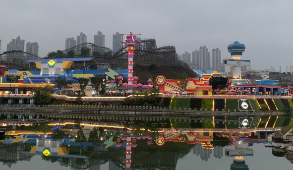 但重庆欢乐谷拥有百余项游乐项目,其中分为欢乐时光、梦幻岛、飓风湾、恐龙森林、老重庆、河谷矿山小镇六大主题区;是全国第一座山地版欢乐谷,曾获2017年城建榜“年度最具影响力主题公园”称号。
