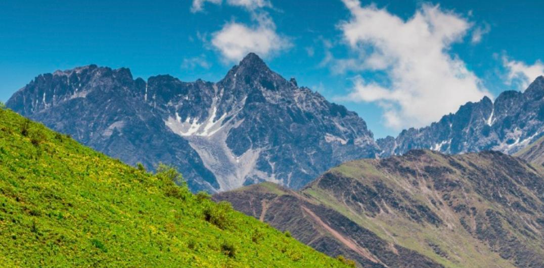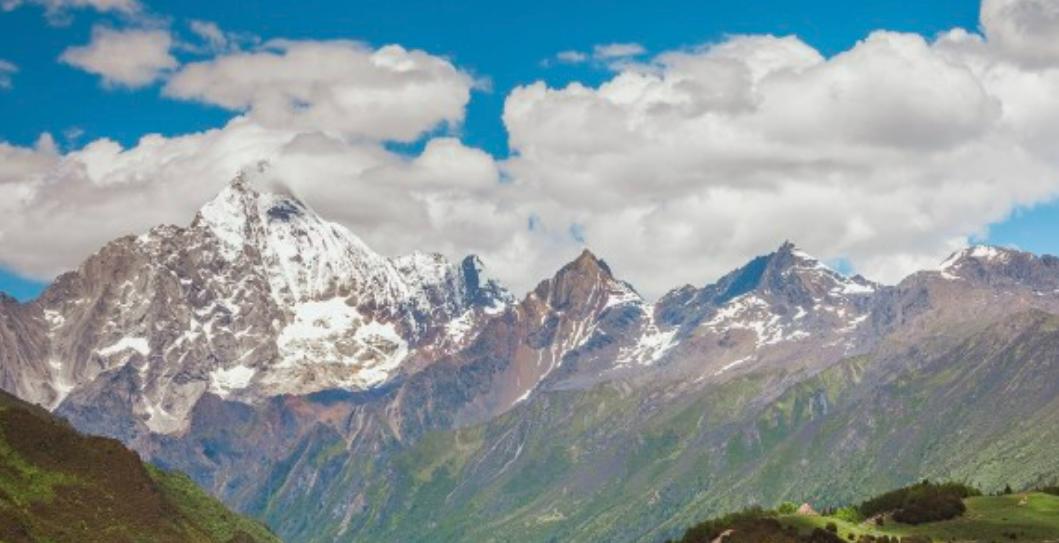 四姑娘山位于四川省阿坝藏族羌族自治州小金县与汶川县交界处,是横断山脉东部边缘邛崃山系的最高峰。四姑娘山由四座连绵不断的山峰组成,它们从北到南,在3~5公里范围内一字排开,其高度分别为6250米、5664米、5454米、5355米。这四座山峰长年冰雪覆盖,如同头披白纱,姿容俊俏的四位少女,依次屹立在长坪沟和海子沟两道银河之上。四姑娘中以幺妹身材苗条、体态婀娜,现在人们常说的“四姑娘”指的就是这座最高最美的雪峰。