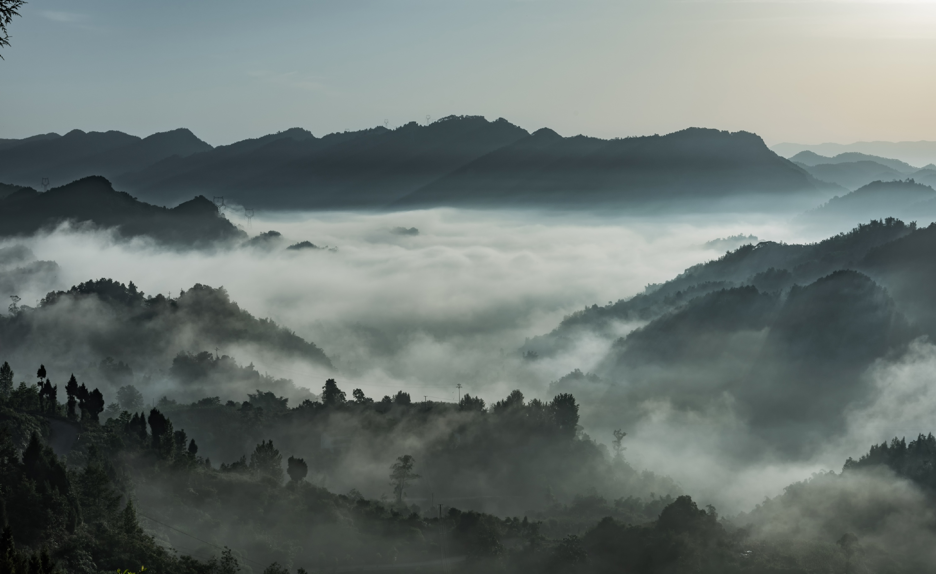 周家山被誉为“重庆牛背山”,当晨曦初露,大桥与两旁的山丘掩映在云烟中,云海、日出、晚霞、星空壮观异常,随着一阵晨风吹过,云雾时而在田野飘过,时而在山间旋绕,时而穿越桥孔,飘渺晨雾,不是牛背山胜似牛背山。