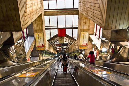 菜园坝火车站是重庆早期的一个主要交通枢纽站,也是重庆与外地的主要联系之地,但是从菜园坝火车站走到两路口去坐地铁需要爬上一个大大的长台阶,对于刚坐完火车下来携带各种行李的游人来说,要爬上去可是很耗费精力的事情,好在这里有一条电梯可以直通地铁站内,上下瞬间变得很轻松。