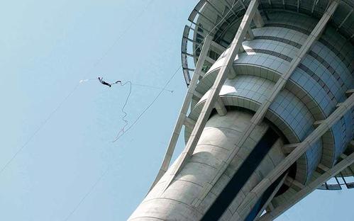 这个是澳门地区的一个标志性建筑,上面有不少的体验项目,蹦极就是其中一个。这个景象在不少的节目也有看到,光是从上面看就让人害怕,别说从上面蹦下来了,所以很多人都不敢体验,就连上去都觉得害怕,不过站在上面,体验下高空俯瞰景象,是一个很好的角度,再加上那种从上而下的失重感,绝对只会感到刺激而忘记了害怕。