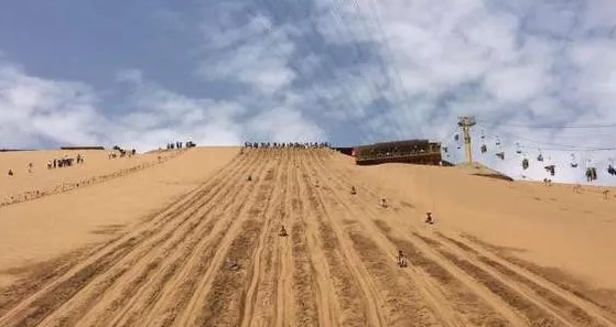沙坡头沙漠旅游区,宁夏回族自治区中卫县城西20公里处的腾格里沙漠南缘,是国家级自然保护区,集沙漠、黄河、高山、绿洲、铁路、公路、防护林带于一处,以治沙成果而闻名。沙坡头有四大特色:一是滑沙,百米沙坡倾斜达60度,从沙坡下滑,可以体会“沙坡鸣钟”响沙。