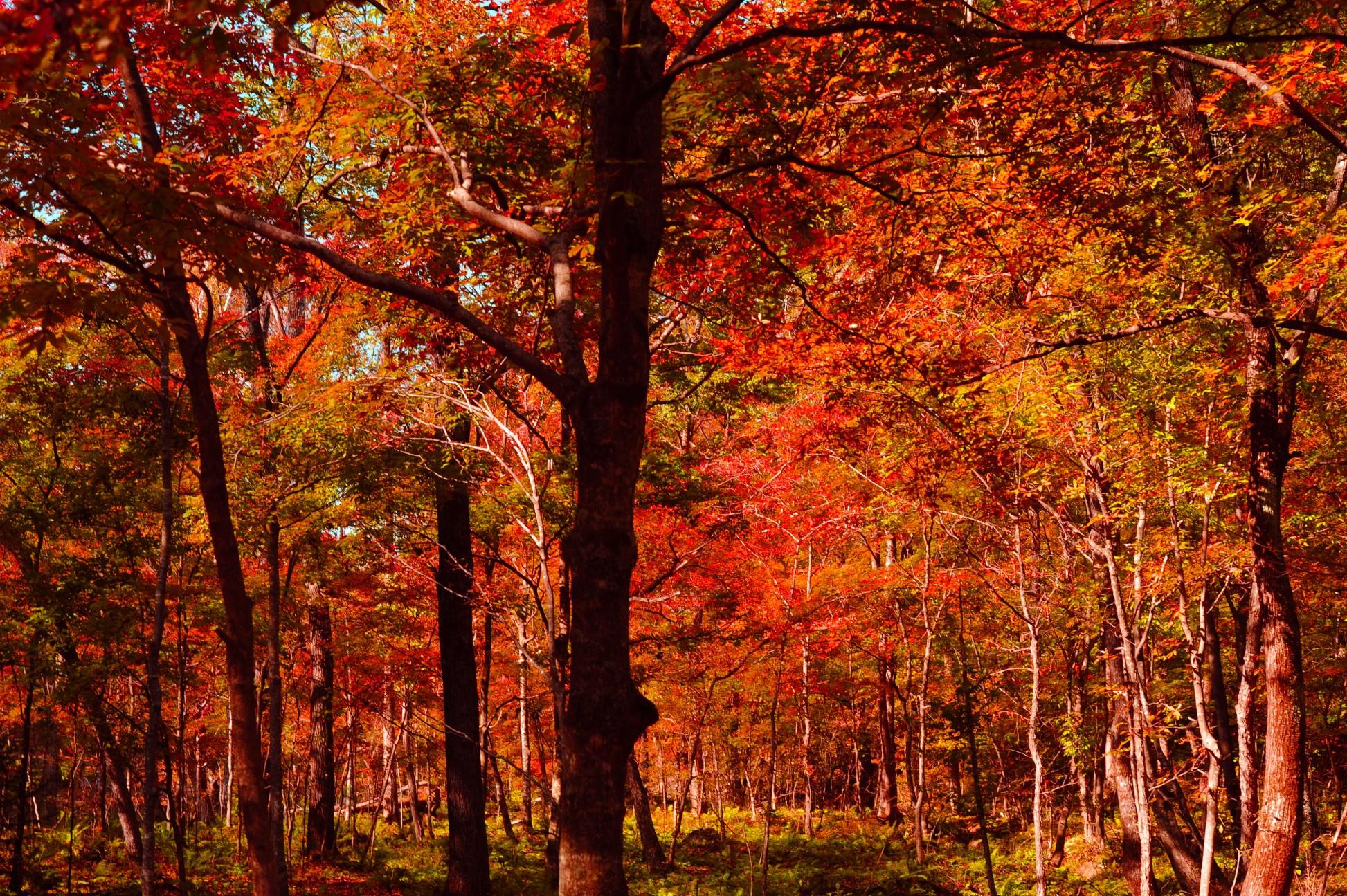 秋天一到,谷长幽深,绵延100多公里的红叶林、白桦林各有独特的风韵。周围的山峰连绵起伏,枫叶点缀其间,有殷红的、金黄的、酒红的、黄绿相间的各色枫叶争奇斗艳、不相上下。