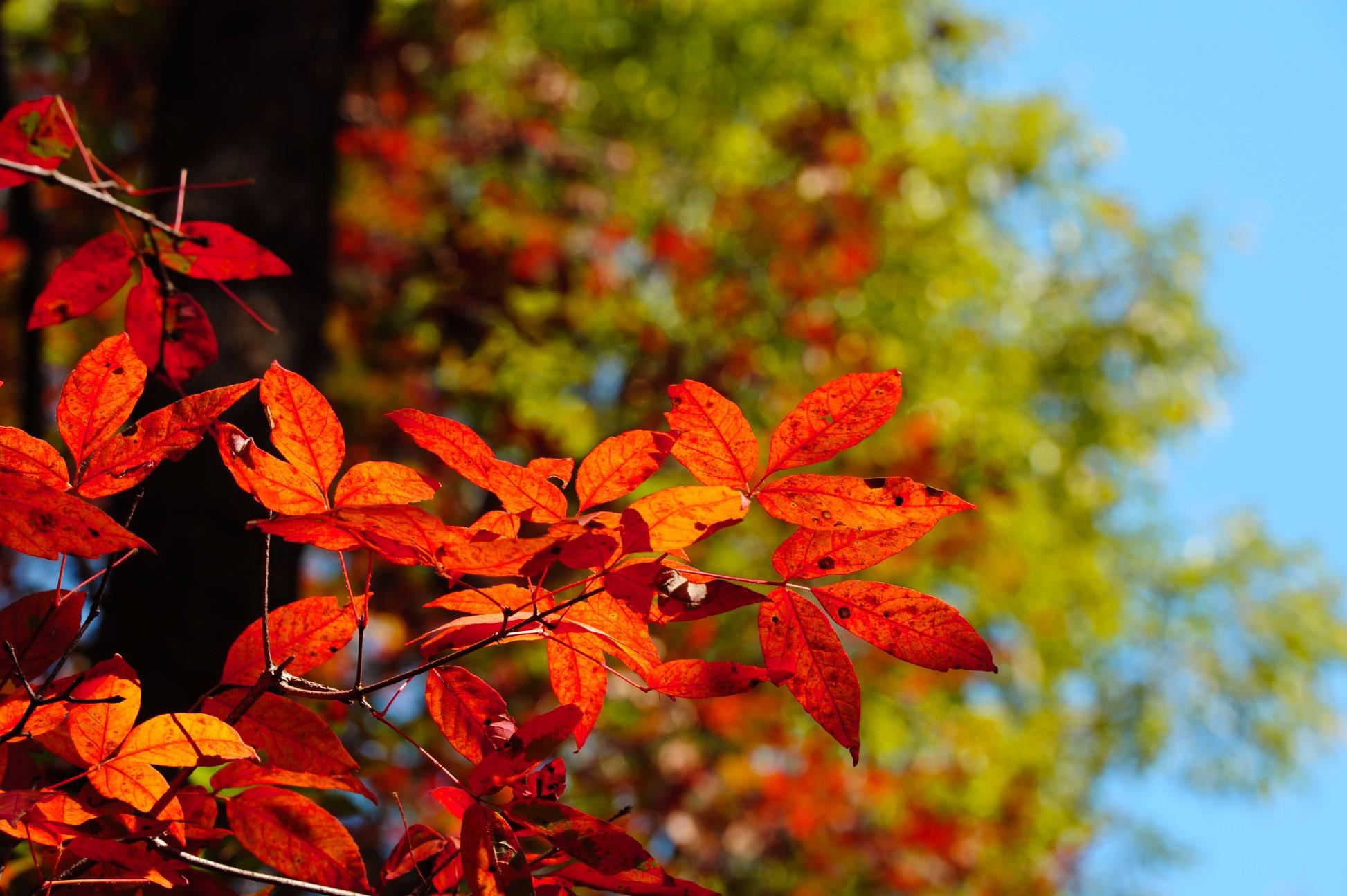 阳光越过山脊、透过丛林洒在红叶上,晶莹剔透、娇艳欲滴,一幕一幕,都极具“枫情”。