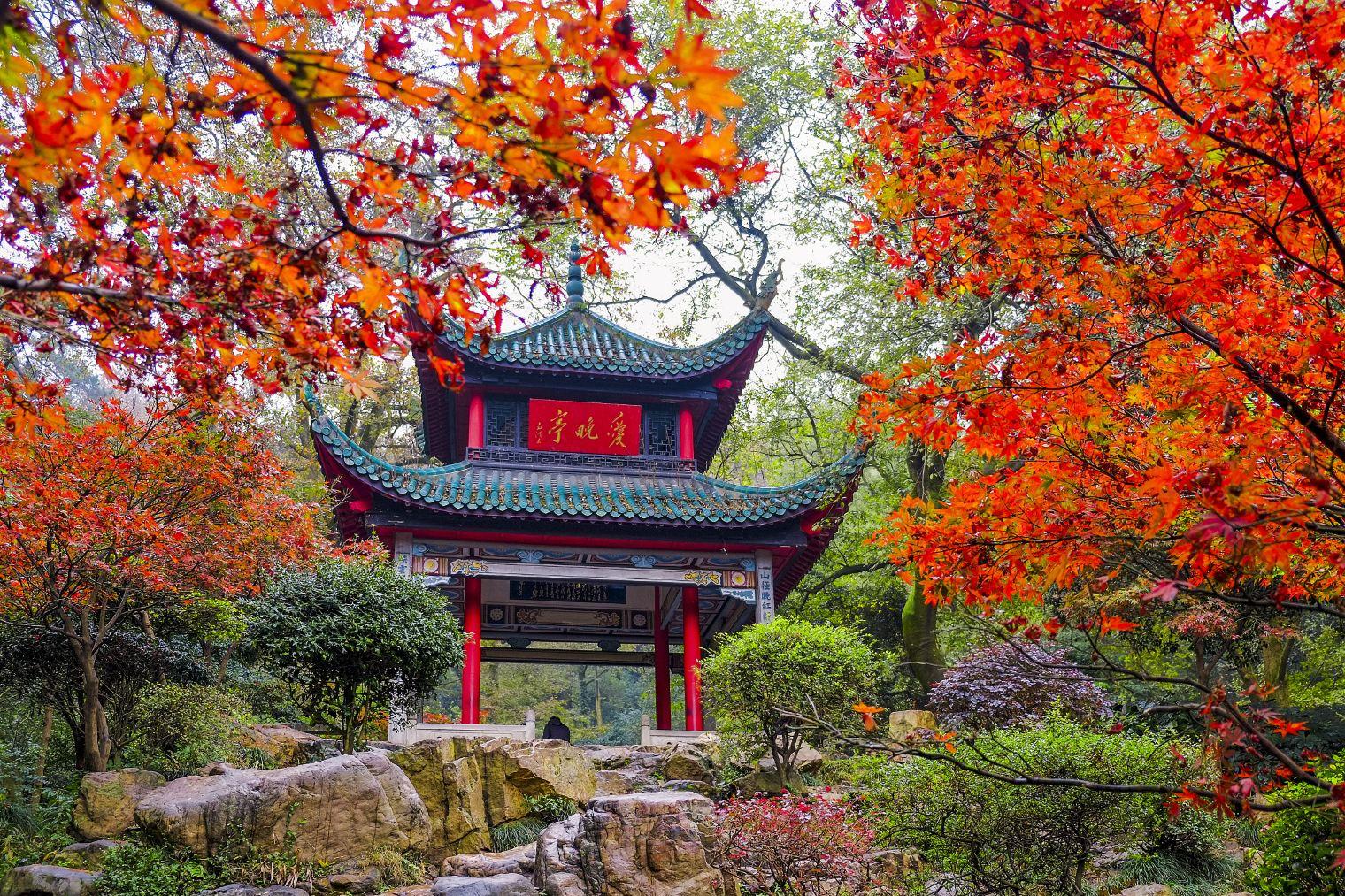 1.北京香山、2.南京栖霞山、3.苏州天平山、4.长沙岳麓山;深秋初冬是观赏枫叶的最佳季节,是旅游途中难得的一道优美的风景线。
