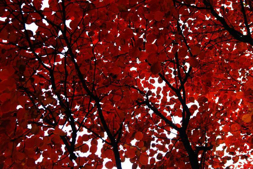 一进红叶谷,就被那深深浅浅的红所吸引,它红的那么放肆,那么热烈,那么浪漫。天蓝的像要滴下水去,脚踩在红叶上,发出咯吱咯吱的声音。秋风一吹,无数的枯叶依依不舍的离开母体,化作千万只枯叶蝶翩翩起舞。红红的枫叶似熊熊燃烧的火焰,又似天上的火烧云,绵延天际,一发不可收拾。