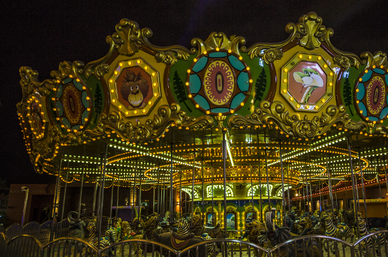 2.旋转木马或回转木马是游乐场机动游戏的一种,即旋转大平台上有装饰成木马且上下移动的座位供游客乘坐。最早记录的旋转木马出现于拜占庭帝国时期。约1860年欧洲出现第一个以蒸汽推动的旋转木马。如今在各大小游戏场、商场等地方皆有各式旋转木马。