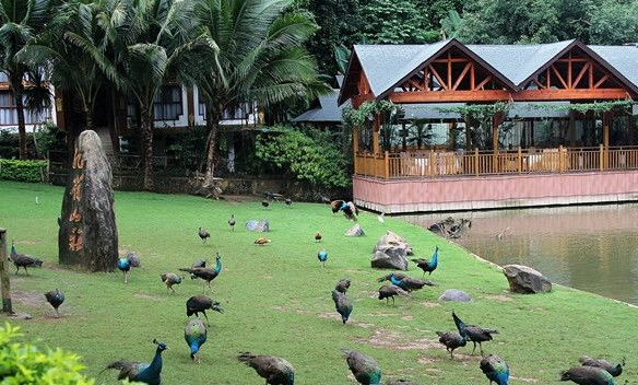 西双版纳原始森林公园,位于景洪以东、澜沧江以北,距州府所在地8公里处,是全州离景洪城最近的一片原始森林。该园是在25000亩热带沟谷雨林的基础上创建,园内森林覆盖率超过98%,是个天然的大氧吧。园内有沟谷雨林、孔雀飞舞、民俗歌舞、美食、泼水狂欢等项目,是西双版纳最大的综合性生态旅游景点之一。以自然、生态、环保、休闲、健康等为主要元素的时尚生活理念,通过冬季的民族年俗文化季、春季的孔雀文化季、夏季的雨林文化季和秋季的民族服饰季予以体现。