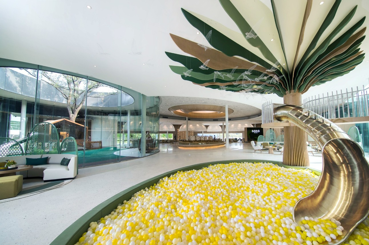 它可以和滑梯、魔鬼滑梯、智勇大冲关、彩虹网等游乐设备搭配使用。