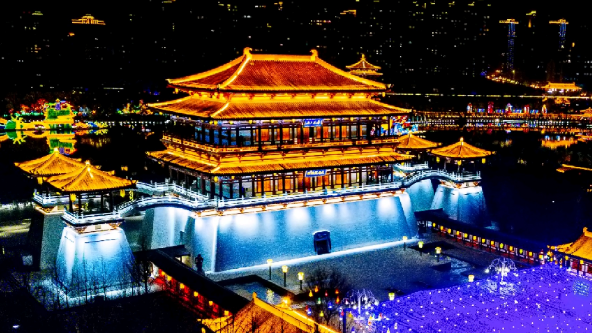 西北地区最大的文化主题公园,拥有国内最大的仿唐建筑群。园内有两个“全球最大”,全球最大户外香化工程、全球最大水幕电影表演。夜景色彩璀璨,灯火辉煌中的唐文化长廊、芳林苑、紫云楼等地,处处灿烂夺目。园区有祈天鼓舞、“教坊乐舞”宫廷演出、“艳影霓裳”服饰表演等。在凤鸣九天剧院上演的大型舞剧《梦回大唐》,是一台集盛唐风情、歌舞精粹于一体的乐舞表演。
