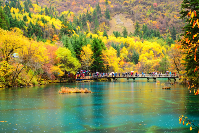 黄龙中国唯一保护完好的高原湿地,以彩池、雪山、峡谷、森林“四绝”著称于世,景区内的钙化池池水随着周围景色和阳光照射角度,能变幻出五彩的颜色,又被誉为“人间瑶池”。黄龙以规模宏大、结构奇巧、色彩丰艳的地表钙华景观为主景,以罕见的岩溶地貌蜚声中外。游览黄龙风景区最佳的时间是夏秋季,此时处于湖泊丰水期,池水面积大,景色丰美。