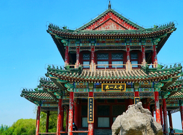颐和园颐和园以昆明湖、万寿山为基址,以杭州西湖为蓝本,汲取江南园林的设计手法而建成的一座大型山水园林,也是保存最完整的一座皇家行宫御苑,被誉为“皇家园林博物馆”,是国家重点旅游景点。1961年,颐和园被中华人民共和国国务院公布为第一批全国重点文物保护单位。颐和园占地面积达293公顷,主要由万寿山和昆明湖两部分组成。各种形式的宫殿园林建筑3000余间,大致可分为行政、生活、游览三个部分。以仁寿殿为中心的行政区,是当年慈禧太后和光绪皇帝坐朝听政,会见外宾的地方。仁寿殿后是三座大型四合院:乐寿堂、玉澜堂和宜芸馆,分别为慈禧、光绪和后妃们居住的地方。宜芸馆东侧的德和园大戏楼是清代三大戏楼之一。