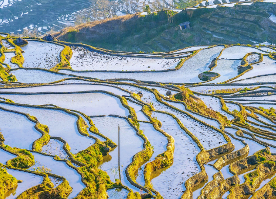 重庆太和梯田这是一个没有任何景区开发的原生态梯田,到了太和场,也没有任何关于梯田的标志和标识,没有一个可以俯瞰整个梯田规模的位置。如果用无人机航拍,还是很有震撼力。水稻对于南方人来说,永远都是心中最平常也是最刻骨铭心的味觉记忆。而梯田可谓水稻文明最生动最富有魅力的画卷。