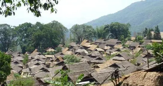 翁丁原始村落翁丁的“翁”为水,“丁”为接,翁丁,意为连接之水。该地有几条小河相互连接,以此得名。翁丁原始村落距县城30公里,属勐角乡管辖范围,共有98户人家,400多人。因为该村到目前为止还保留着许多佤家的传统习俗和信仰而称之为原始村落。寨桩是佤家的一种图腾崇拜,一般位于寨中央的打歌场,代表着有人类在这里繁衍生息,最高的那杆是用龙竹制的幡杆,顶部有几圈竹篾做的饰物,上部故意插些刺刺的篾条头子,这既是饰物,又是避邪的物器,就像汉人用艾蒿避邪,桃树驱鬼,门神护家一样。篾圈下面,有一尺长的木船,代表着一帆风顺,木船下面,有一条木鱼,代表年年有余,有船就有水,有水就有鱼,这预示着全村风调雨顺、万事大吉。