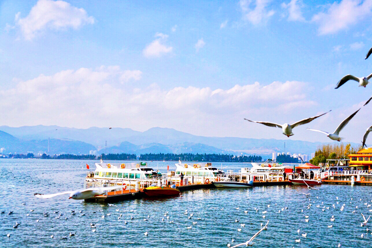 无愧于“春城”雅称,四季如春,天空碧蓝又高远。太阳肆意地迸发着耀眼的光,迎着每一位在这座城市漫步的人。翠湖边喂红嘴鸥这件事几乎成为云南之行必做的事之一,每年的11月份开始,就会有上万只红嘴鸥来到翠湖。游客喜欢买些面包屑来喂它们。这应该是一件极其快乐的事吧。昆明有着清澈优美的自然风光,独具特色的民俗文化和纷繁多彩的民族活动,每年吸引着大批游客前来观光旅行。