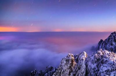黄山被誉为“天下第一奇山”,自古以来,就传播着“五岳返来不看山,黄山返来不看岳”的说法。黄山位于安徽省南部黄山市黄山区境内(景区由市直辖),黄山为三山五岳中三山的之一。奇松、怪石、云海、温泉、冬雪素称黄山“五绝”。黄山之冬可以说是游黄山最奇妙的季节。冬季是黄山云海最容易形成也是最壮观的季节,雨雪天后,常常出现大面积的云海,尤其是壮观的云海日出景观,让人流连忘返。一年之中,黄山平均积雪约50天,平均初积雪日期为12月底,终雪日期在第二年的3月初。雪后的黄山到处是银装素裹,巧石如玉,真可谓是“处处路通琉璃界,时时身在水晶宫”。
