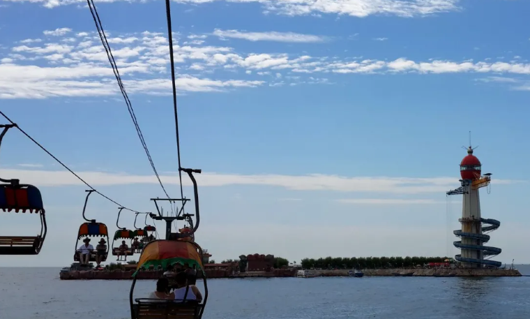 国内的海上索道在秦皇岛市抚宁区南戴河旅游度假区仙螺岛,距离北京280公里,这里拥有全国唯一的跨海索道,也拥有大面积的公共海域,可以让游人度过一个凉爽的夏天。