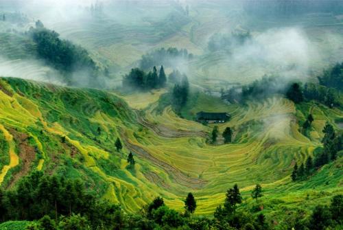 梯田,一直以来就是很好的观光景象。线条分明,气势雄伟壮观,如一级又一级的阶梯,层层相叠,依山而起。紫鹃界的梯田,自带灌溉系统,整个山体虽然没有一口山塘,一座水库,但却能够养好其中的农作物。梯田、农居、森林和林间小路交汇在一起,仿佛就像一幅田园山水画,在这样的地方,即使不用干什么,都会觉得十分美好。