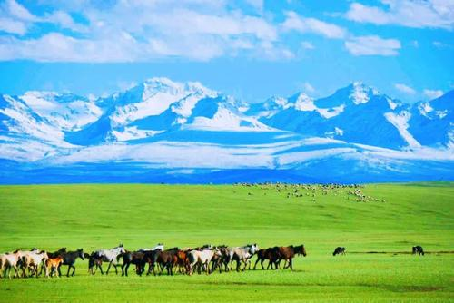 巴音布鲁克蒙古语意为丰泉-“丰富的泉水”,草原地势平坦,水草丰盛,是典型的禾草草甸草原。是新疆最重要的畜牧业基地之一。不但“九曲十八弯”的开都河,更有优雅迷人的天鹅湖。游玩巴音布鲁克草原的最佳时间为每年的6-9月,其他时间则比较寒冷。乘车穿行在巴音布鲁克大草原上,景草原层峦叠翠,绿野无限,湖沼广布,牛羊遍野,雪莲似的蒙古包坐落其间,一片兴旺繁荣的景象。