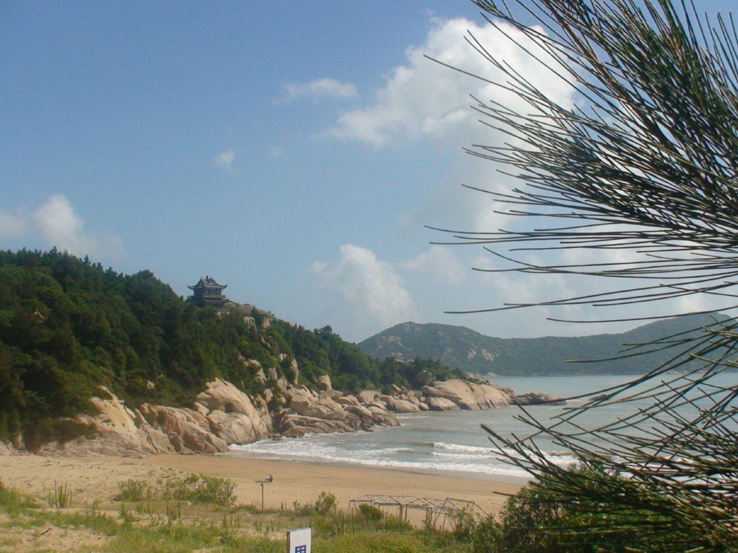 沙滩很大,呈月牙状,长约1000米,宽大概有50米。这里的沙质特别好,沙粒很细很白,当地人为此把这个沙滩称为“银滩”。