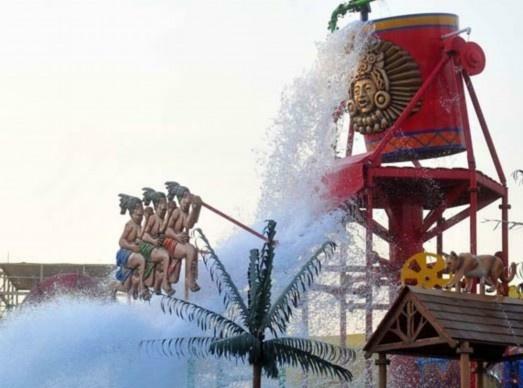 内设玛雅海滩,巨大泳池,人造海浪,以及众多的水上项目,和随处可见的遮阴凉棚。