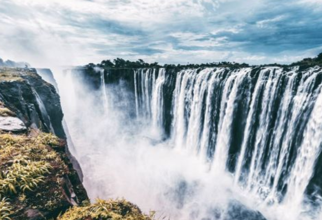 维多利亚瀑布又称莫西奥图尼亚瀑布,位于非洲赞比西河中游,赞比亚与津巴布韦的接壤处。维多利亚瀑布的形成,是由于一条深邃的岩石断裂谷正好横切赞比西河。