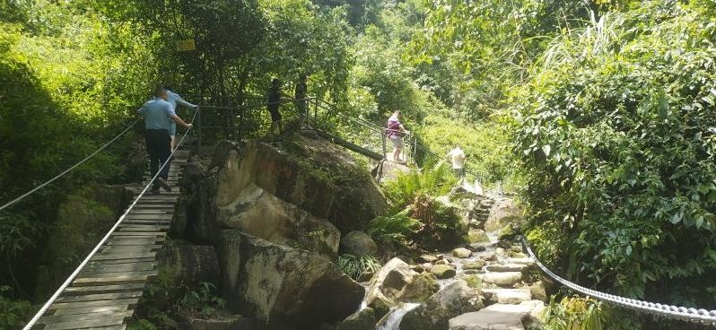 穿越峡谷穿越峡谷由穿越地带和探险地带构成,全长3.2公里,大约游玩1.5小时;由螺旋梯进入谷底,沿溪流峡谷溯溪探险而上,地形分布的有独木桥、铁索桥、攀爬道,网桥、绝壁栈道、穿越丛林等特色项目供您游玩儿,具有一定的挑战性和探险性,让您体验丛林间的快感。