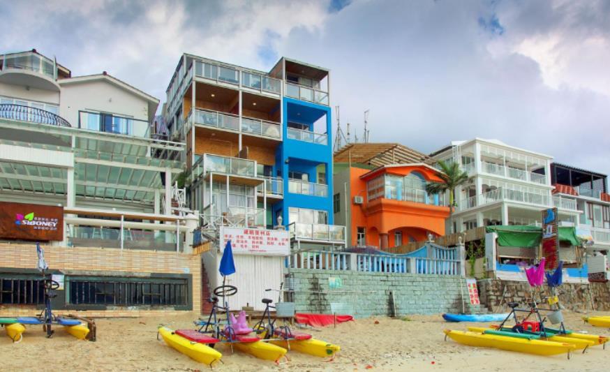 海边客栈深圳大鹏海边客栈主要集中在深圳大鹏新区半岛的较场尾、金水湾这一条海岸线上,大大小小20多栋颜色靓丽、造型不一的房屋,环境安静舒适,听着鸟叫虫鸣,仿佛回到了快乐的乡村童年。