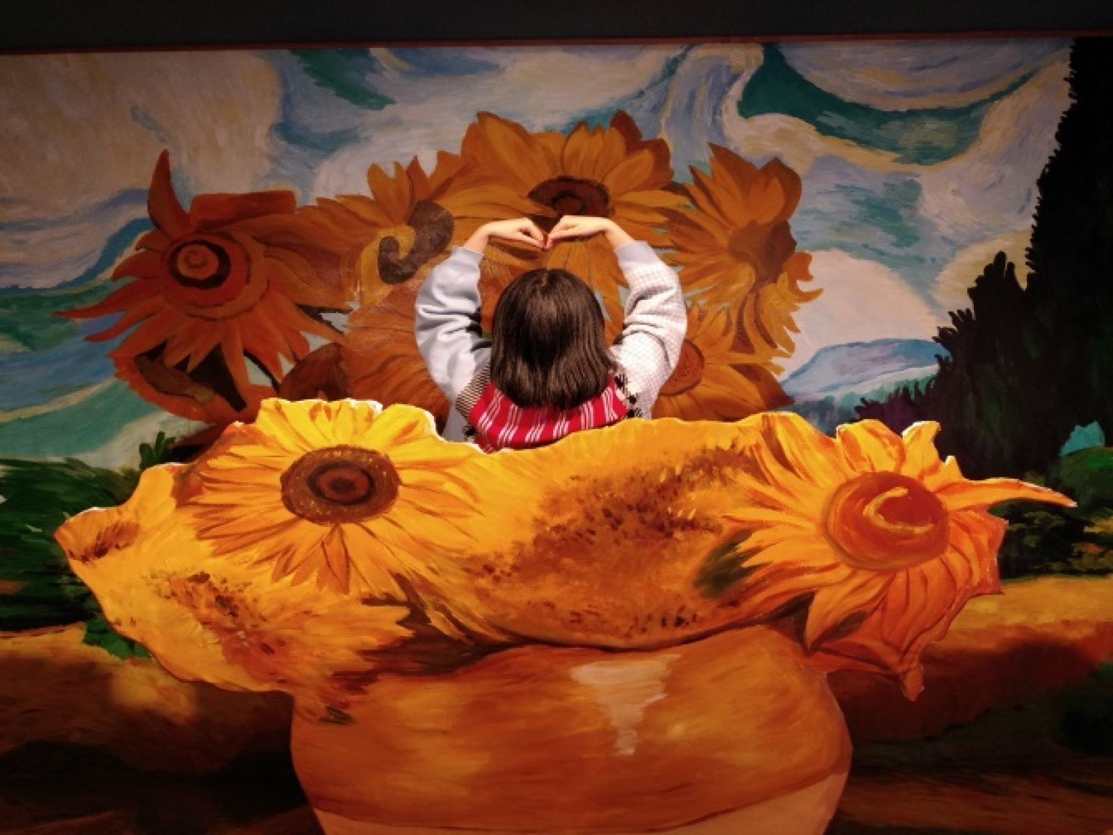 里面是以展示梵高画作为主题的星空馆,整体风格还是很多种的,慢慢的一间一间走很有意思,非常出片,空气不闷,环境还不错,服务很好,里面灯光打的很漂亮,同类的灯光好几组,但是氛围感不同,门口还可以租礼服和汉服,很不错,值得玩。