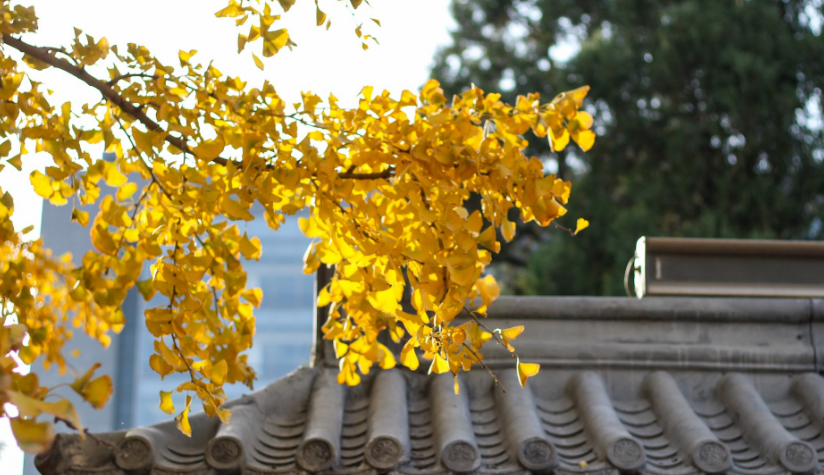每年11月上旬到12月上旬,这时的银杏叶片颜色最透亮。每到深秋,树下铺满金黄,市民游客走在长长的银杏大道,踏在厚厚的银杏叶上,红墙映掩映,能真切感受到北京秋天的气息。