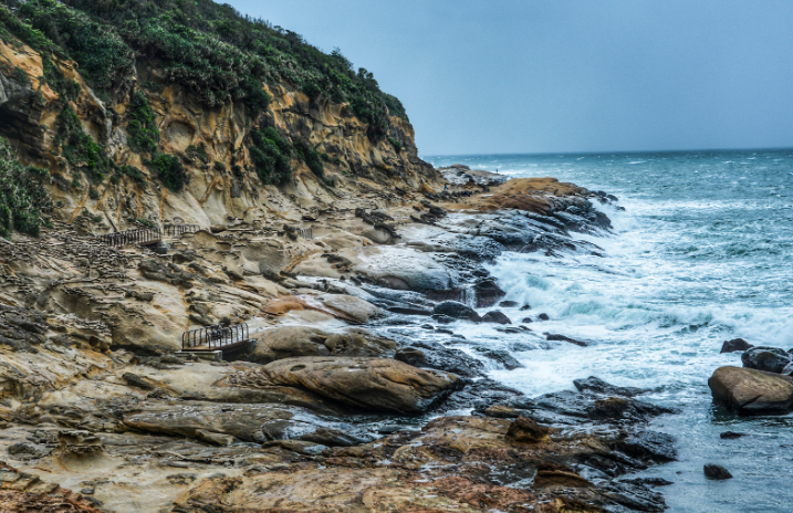 三、野柳公园野柳位于北海岸金山与万里之间,为一狭长之海岬,岬长约1700公尺,宽约250公尺,呈东北向海岸外突出,其主要的景观意象乃是由海浪侵蚀风化作用所形成的岩石景观。