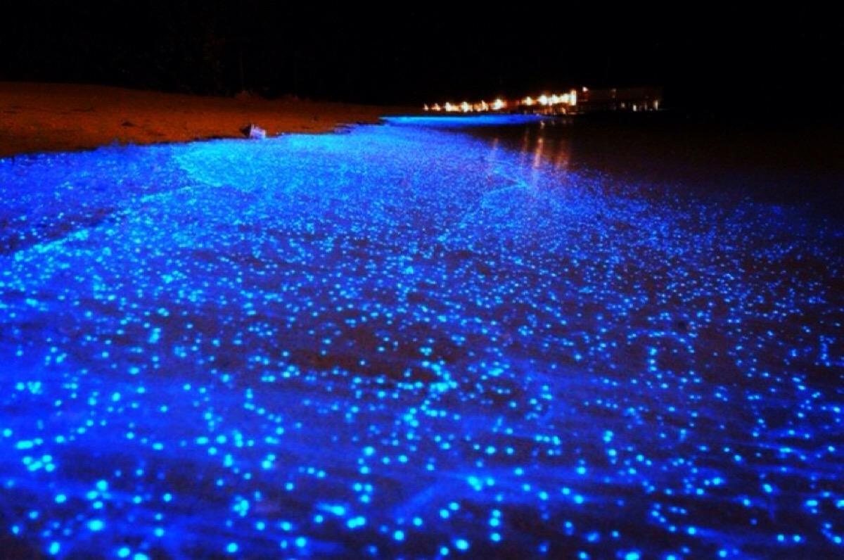 蓝眼泪"蓝眼泪"是一种在海底生存的微生物 ,因为细小如沙粒,所以英文称为blue sand。它是靠海水的一种能量生存的,但是随着海浪被冲上岸时,离开海水的蓝眼泪只能够生存少过100秒,随着能量的消失,蓝眼泪的光芒失去,它的生命也就结束了。