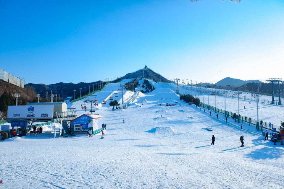 南山滑雪场该滑雪场是目前华北地区规模最大、设施最先进、雪道种类最齐全的滑雪度假区。该滑雪场已建成高、中、初级雪道11条, 适合高、中、初级各类滑雪者,并拥有中国第一个单板公园 –NANSHAN MELLOW PARK( 南山-麦罗单板公园 ) ,内有跳台( 4 个)、单板墙( 6M*3M )、铁杆( 6 个)、 U 型槽等设施,同时还开辟了国内唯一的“ 猫跳 ”(Mogul高级道、波浪练习道(Waves Slope)和儿童雪地摩托专用道,以及国内第一座六人制雪地足球场。