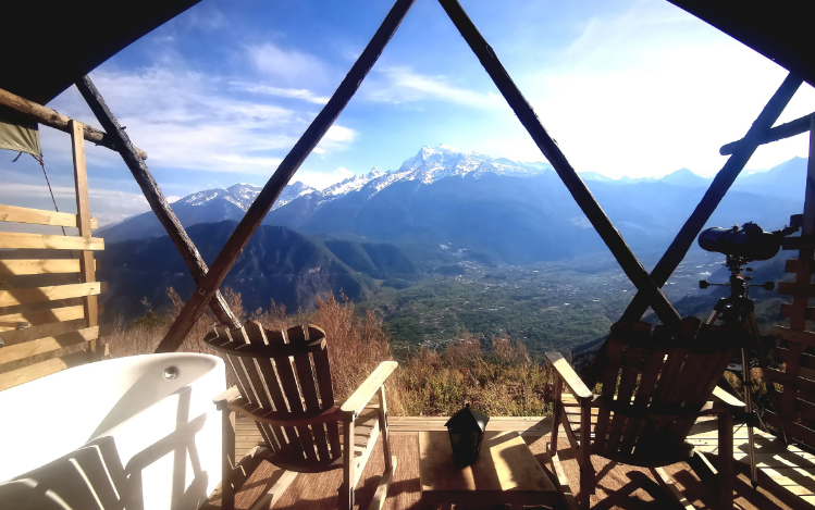 二、云阶格兰平帐篷营地云阶格兰平帐篷营地位于云南省迪庆藏族自治州香格里拉市东环线,海拔近三千米以上的地方;这个高度和云朵平齐,电影里云雾环绕的仙境,在这里是它最平常不过的模样;坐在帐篷里,放眼就是秀丽壮美的哈巴雪山。