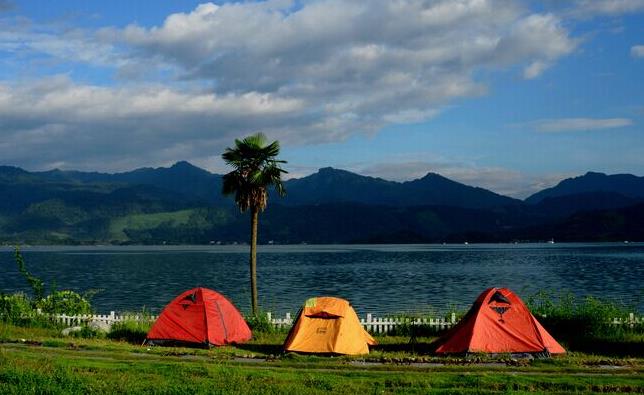 露营生活离不开水,但也不能将营地扎在河滩上,以防暴雨后山洪爆发重帐篷;