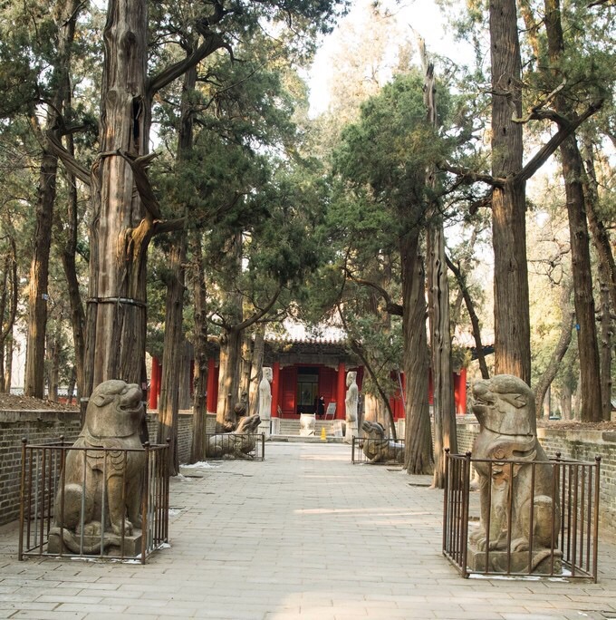孔林,又称至圣林,它位于山东省济宁市曲阜市城北1.5千米处,是孔子及其后裔的家族墓地,与孔府、孔庙统称“三孔”。孔林占地近200万平方米,有坟冢10万余座,有神道与城门相连。孔子墓位于孔林中部,封土呈偃斧形。