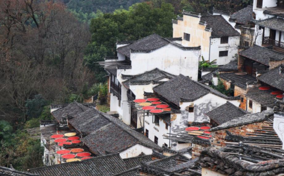 江西上饶的春天美得很立体,田垄中是黄灿灿的油菜花、粉红的桃花、雪白的梨花……目光顺着山势向上,民居依山而建,错落有致,家家户户院前的圆匾上晒着红黄橙绿的花朵和果实,和粉墙黛瓦形成最特别又最和谐的反差。