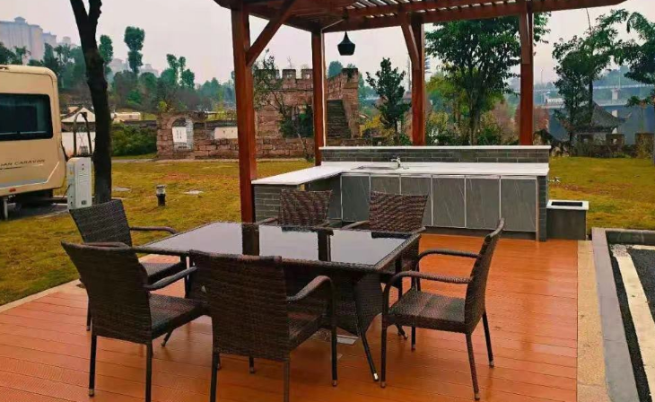 1、综合服务区里提供了餐饮、房车租赁、帐篷、电烧烤架、淋浴、充电桩等功能服务;让游客在露营的同时,享受到家的便捷和温暖;