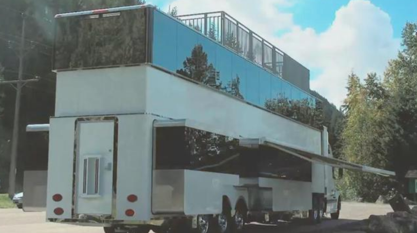 我们平时所见到的房车,大多跟一个中小型的卡车差不多大,但是在国外却出现了这样一辆房车,它的总面积达到了一百多平方米,可谓是世界上最大的房车了。
