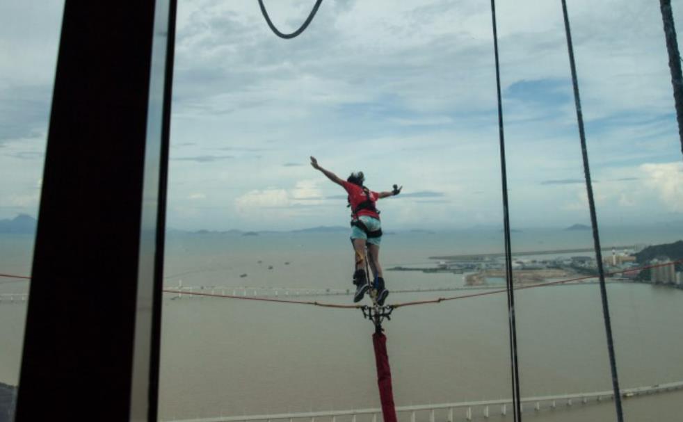 2、蹦极之前反复检查好身上的所有的设备是否安全。